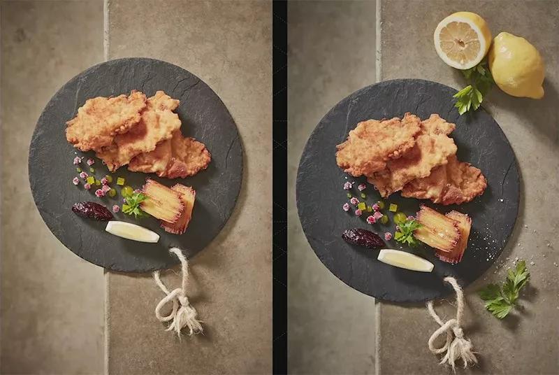 誠然,美食攝影主要的目的是拍出食物的美味,食物本身的“賣相”是最重要的,但使用一些恰當(dāng)?shù)男〉谰哌M(jìn)行“裝飾”,卻可以起到畫龍點睛的效果。