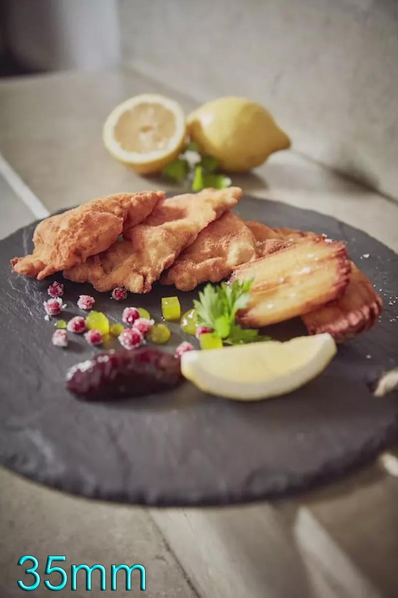首先 35mm 廣角。廣角鏡頭的最顯著特定是“視野開闊”——但對于拍攝美食這一題材來說,這一點意義不大;除去這一方面,廣角鏡頭還存在畸變失真嚴(yán)重,焦外虛化能力較弱的特點。