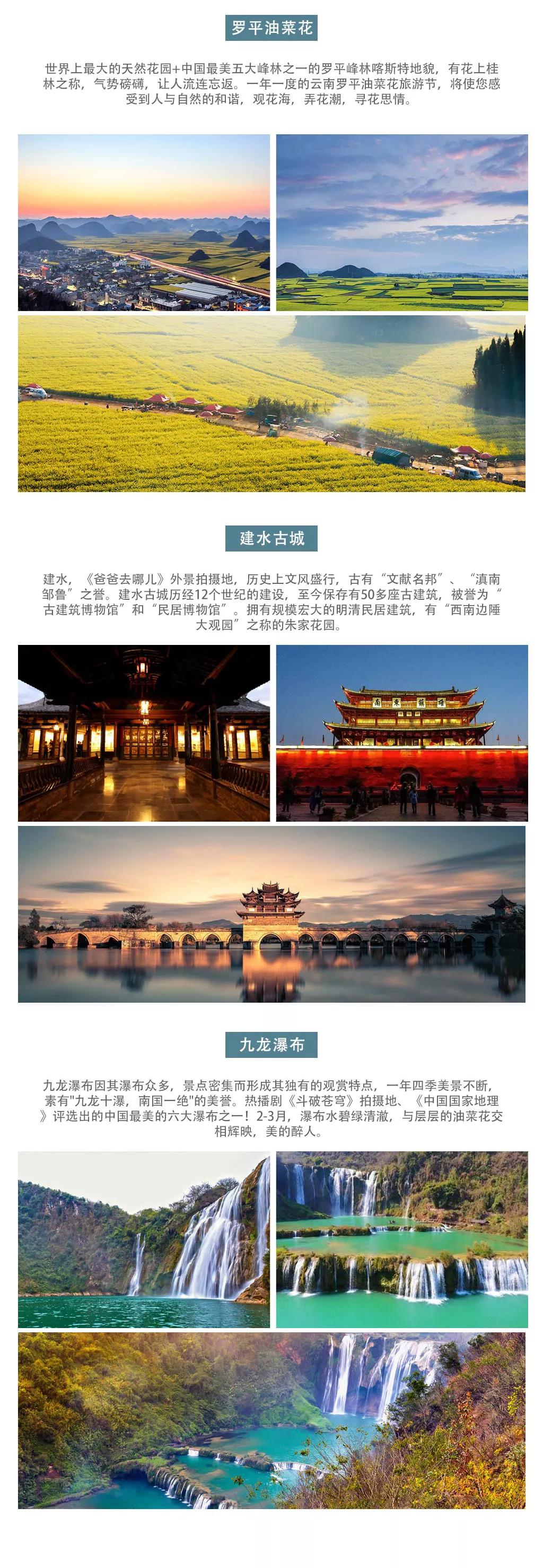 當(dāng)日行程:早起出發(fā)前往熱門(mén)影視《斗破蒼穹》拍攝地——羅平縣,到達(dá)羅平縣城后直接前往觀賞中國(guó)六大最美瀑布之一的【九龍瀑布】,九龍瀑布群因其瀑布眾多,景點(diǎn)密集而形成其獨(dú)有的觀賞特點(diǎn),一年四季美景不斷,素有"九龍十瀑,南國(guó)一絕"的美譽(yù),在約兩公里長(zhǎng)的河道上有十級(jí)瀑布,九龍十瀑之間,以淺灘或深潭相連,或雄偉、或險(xiǎn)峻、或秀美、或舒緩,千姿百態(tài)、異彩紛呈,裂帛般的白瀑,綠玉般的流水,層層疊疊階梯狀的水臺(tái)繞著水瀑蜿蜓而下,從不同的角度審視每次都能發(fā)現(xiàn)新的一層驚喜,邊登高看景邊拍照,渴了買(mǎi)根當(dāng)?shù)爻雒乃}卜,汁多美味,清甜潤(rùn)喉,一路到九龍瀑頂端,微風(fēng)拂過(guò),看那一波又一波的金色油菜花浪潮;