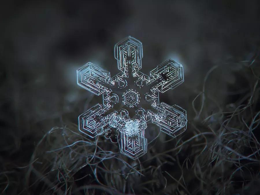 在他的微距鏡頭下,紛紛揚(yáng)揚(yáng)的一場場雪被“拆碎”,形態(tài)各異的冰晶呈現(xiàn)出各式形狀規(guī)整、樣式精美的圖案,在讓人沉迷于雪花無限美麗與夢幻的同時(shí),亦讓人不禁贊嘆大自然的神奇。