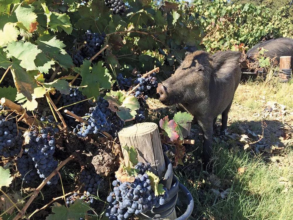 意大利的酒鄉(xiāng)托斯卡納深受野豬的困擾。當地的野豬群日常以糟蹋葡萄園為樂,它們大批沖入園中踐踏葡萄藤、扯拽果實,管你是什么DOC、DOCG,老藤嫩葉通通因為它們凌亂成泥碾作塵。