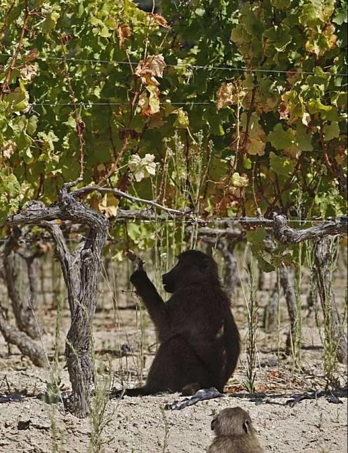 當地一酒莊經理無奈表示,狒狒們常年來打卡收割一波,臨近采收季更甚,葡萄農苦不堪言。這群“無恥之徒”每周能吃掉兩到三噸的成熟葡萄,換算成酒就是2000瓶,這可是個不小的損失。