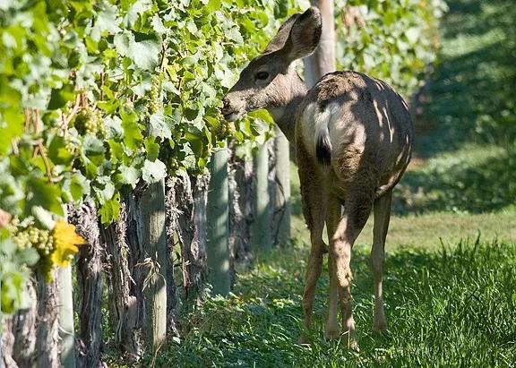 在早春,鹿群令北美的酒農格外頭疼。彼時鹿的食物來源正稀缺,而葡萄藤的嫩芽剛剛出現,這些汁水充足、纖維豐富的葡萄葉讓它們鐘愛不已。然而,鹿對枝葉的撕扯可能造成葡萄藤的嚴重損害,鹿群掠過處,酒農常常損失慘重。