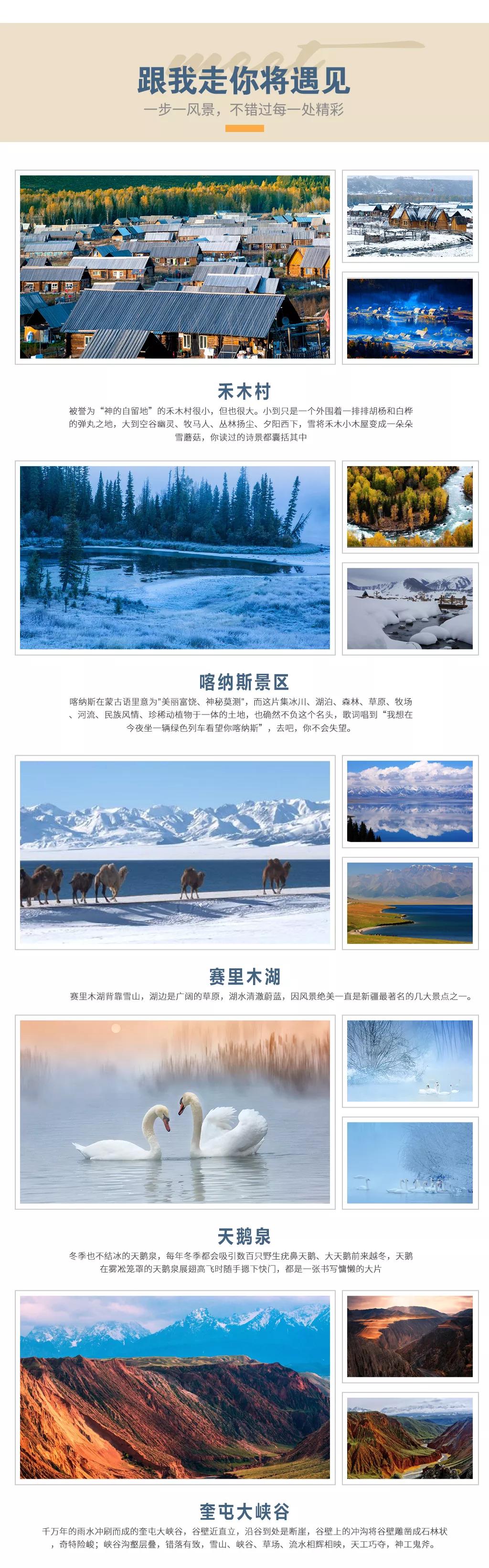 5、贈(zèng)送項(xiàng)目:贈(zèng)送禾木村馬拉爬犁,禾木冰雪樂園雪圈和香蕉船體驗(yàn);贈(zèng)送戶外禮包旅游三寶、魔術(shù)頭巾、暖寶寶緩解旅途疲勞;贈(zèng)送烏魯木齊24小時(shí)接機(jī)接站服務(wù),給你最貼心的旅程;