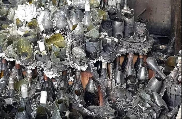 ▲ 爆炸的葡萄酒瓶上覆蓋著厚厚的一層山火灰燼