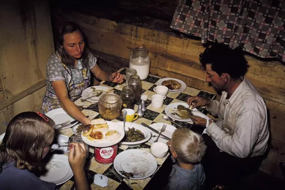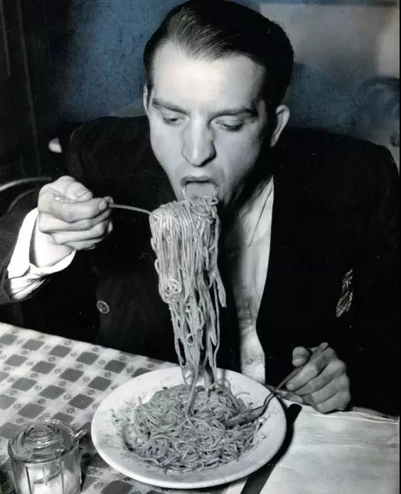 比如,維吉(Weegee)拍攝的《菲利普·斯塔佐在 WPA 上享受他最喜歡的食物,因為他聽說軍隊不太喜歡供應意大利面》(Phillip J. Stazzone is on WPA and enjoys his favourite food as he'sheard that the Army doesn't go in very strong for serving spaghetti. 1940)以他慣常的戲劇化表達讓一副普通境界的吃相躍然紙上。維吉鏡頭下的美國在 1940年尚有一盤意大利面,拉塞爾·李(Russell Lee)在同一年份走入美國新墨西哥州的鄉(xiāng)下,便還能看見大蕭條最后的尾聲:小城市普通美國家庭并不豐盛的晚餐。20年后,同樣在美國,食物上的局促有了很大改觀,但更直觀的窘境達到了高峰: 種族問題。佚名攝影師拍下的《午餐吧臺的罷工》(Lunch Counter Sit-in) 即顯示了這個問題。兩名美國黑人大學生在“只準白人” (whites-only)的餐廳吧臺上學習,兩名白人女服務員在觀望他們的同時拒絕為他們服務。冰冷拒絕且?guī)?,是非常純粹的仇恨表情。四個人,圍桌,卻沒有可供享用的食物。種族主義作為曾經(jīng)橫亙在他們之間無形的高墻,直到今天都還有殘垣斷壁留存,化為低矮的絆腳石。