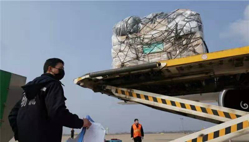 1月28日,工人在武漢天河國際機(jī)場卸貨。當(dāng)日,武漢天河國際機(jī)場共有3架全貨機(jī)滿載醫(yī)療防疫物資抵港,包含醫(yī)用口罩、醫(yī)用帽子、乳膠手套、防護(hù)服、消毒液等各類防護(hù)用品及醫(yī)療藥品,共計(jì)60余噸。