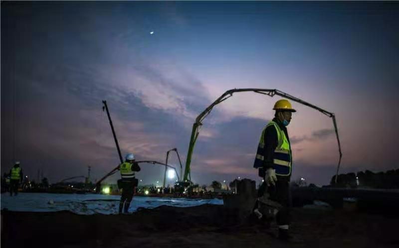 1月28日,武漢火神山醫(yī)院建設(shè)工地。當(dāng)天,武漢火神山醫(yī)院病房的框架結(jié)構(gòu)已經(jīng)逐步搭建起來,單層病房框架結(jié)構(gòu)也在加緊建設(shè)。