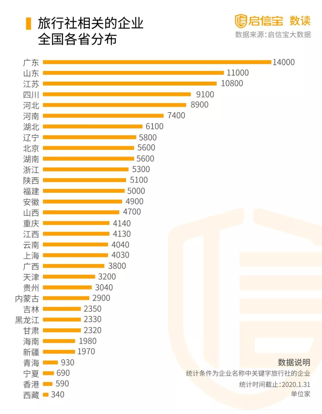 那么今年,根據(jù)啟信寶的數(shù)據(jù)統(tǒng)計(jì),全國共有153529家有旅行社業(yè)務(wù)的企業(yè),其中廣東、山東、江蘇分別數(shù)量為前三,可能損失會(huì)相對(duì)較大。