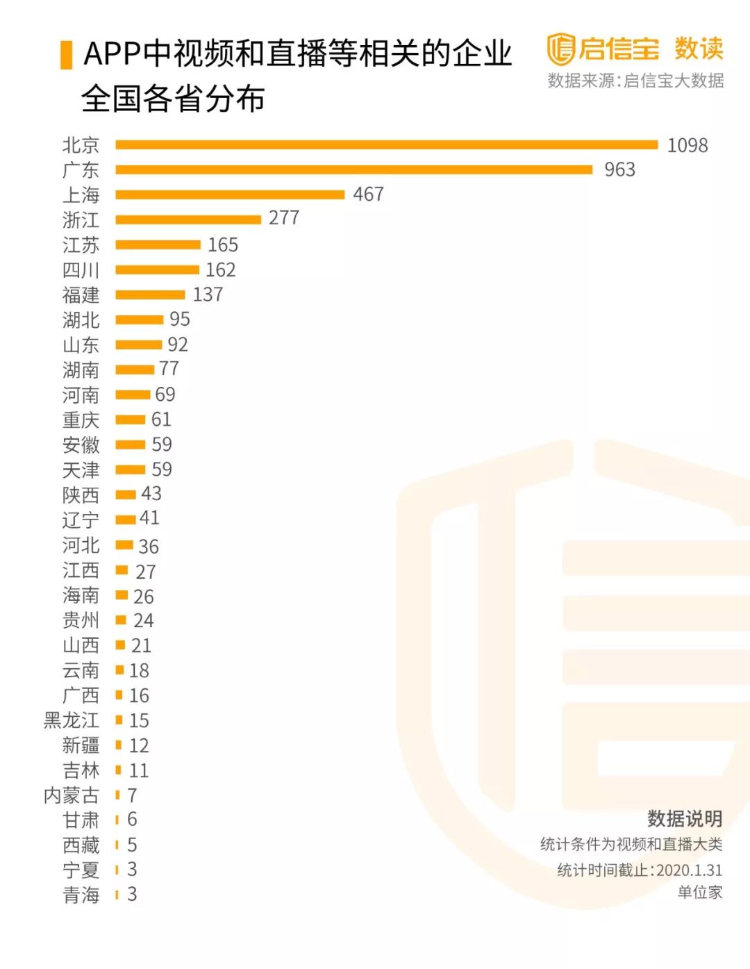 根據(jù)啟信寶數(shù)據(jù)統(tǒng)計(jì),全國共有4132家有視頻業(yè)務(wù)的企業(yè),其中北京、廣東、上海分別數(shù)量為前三,可能受益會(huì)相對(duì)較大。