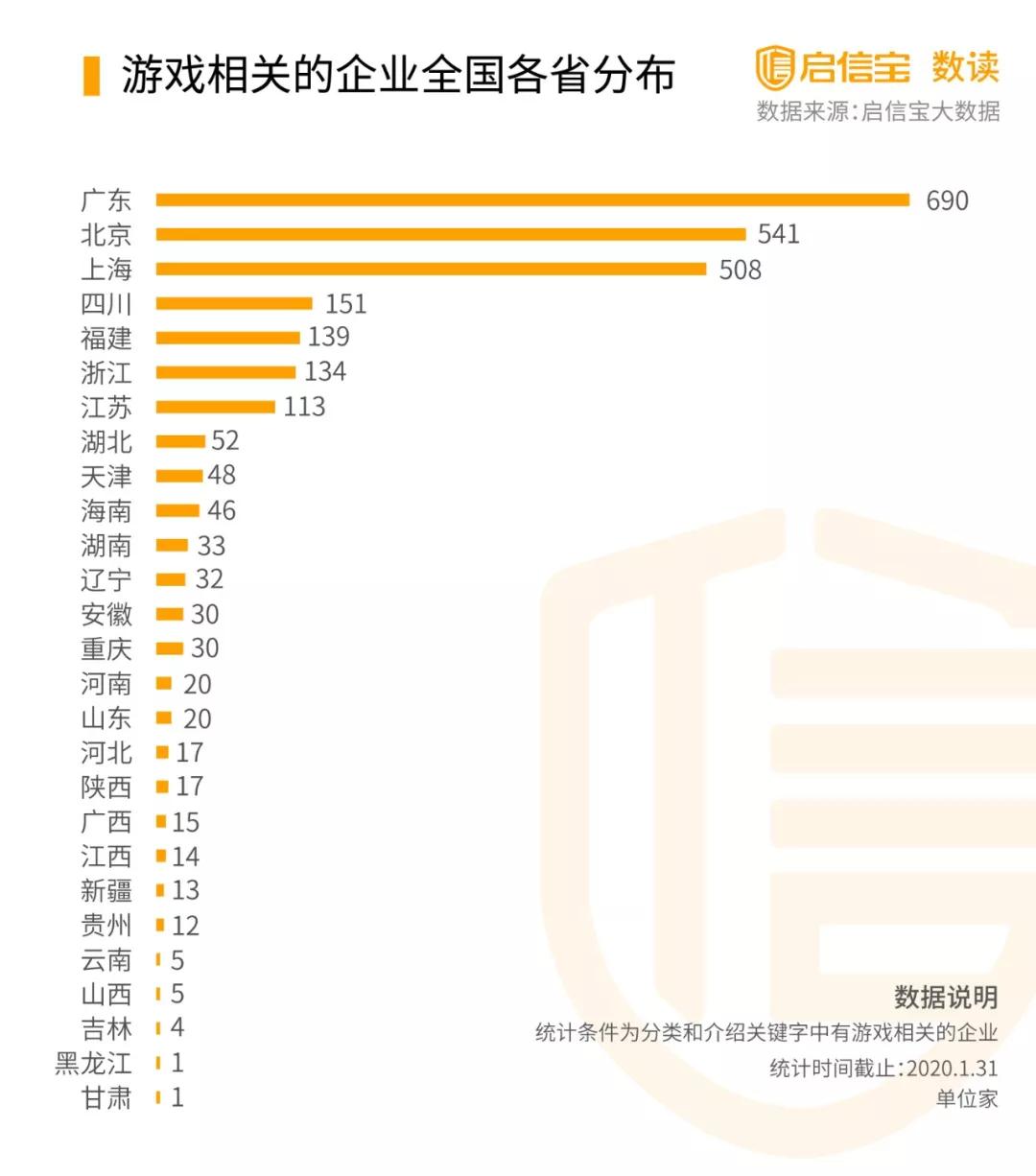 根據(jù)啟信寶數(shù)據(jù)統(tǒng)計(jì),全國共有2693家有游戲業(yè)務(wù)的企業(yè),其中廣東、北京、上海分別數(shù)量為前三,可能受益會(huì)相對(duì)較大。