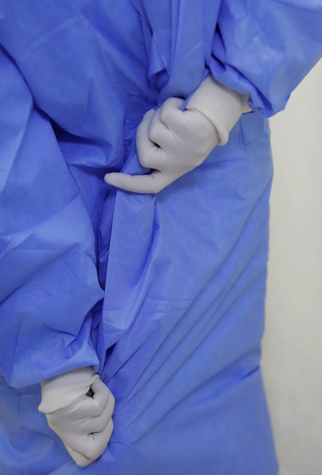 醫(yī)護人員在清潔區(qū)做進入的最后準(zhǔn)備。