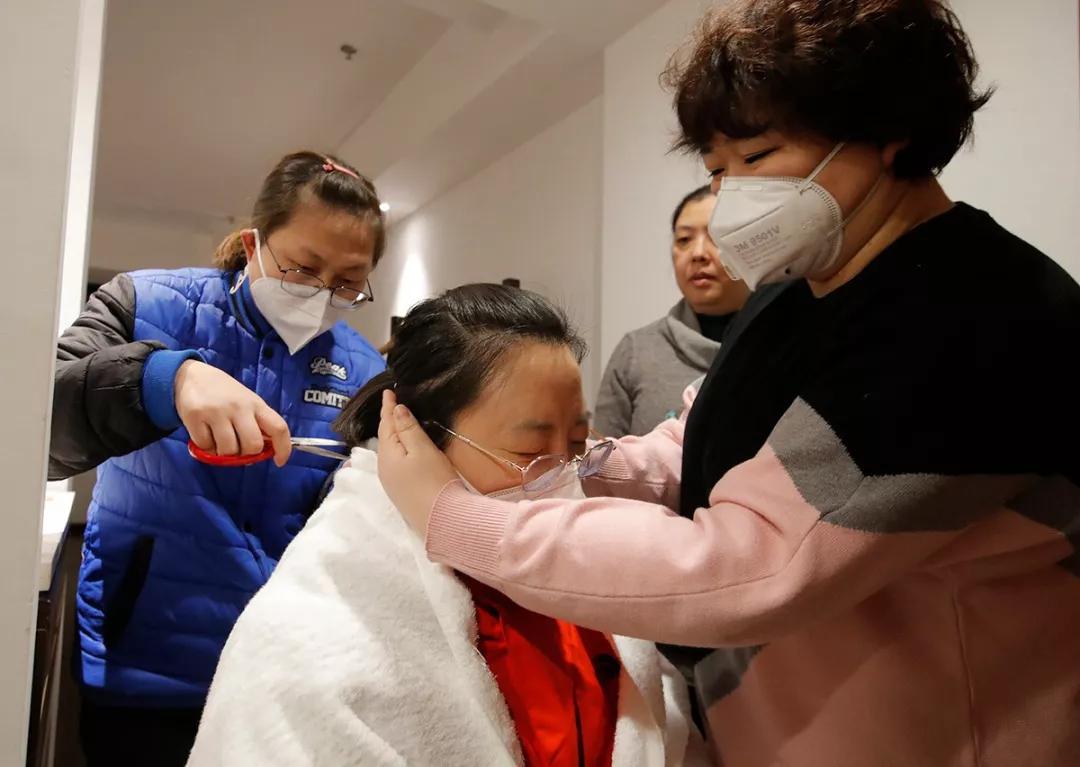 北京醫(yī)療隊到達后的第二天,由于就要穿著防護服進行工作,宣武醫(yī)院的一位護士剪掉了自己的長發(fā)。