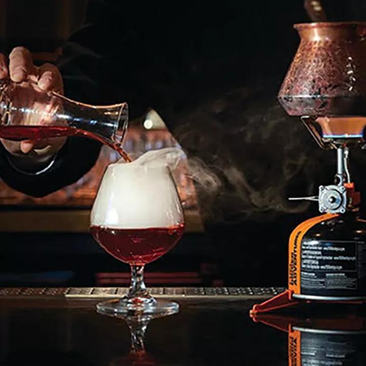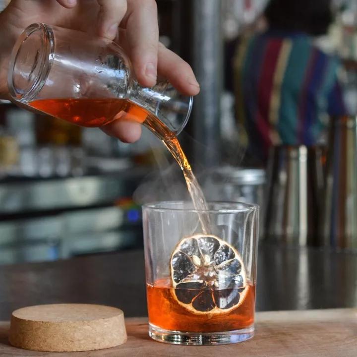 將點燃的百里香、迷迭香或薰衣草等草本植物,加入雞尾酒,不僅能增添風味,也是一種有趣的酒會互動方式?!白灾频哪瞎宵S油增加了波旁威士忌的深度和豐富性,同時還帶有一點秋天的香料,這種組合是完美的”,來自紐約Sen Sakana的飲品總監(jiān)Zachary Gross說?!鞍央u尾酒和百里香一起煙熏制作完成,帶來了秋天的味道。