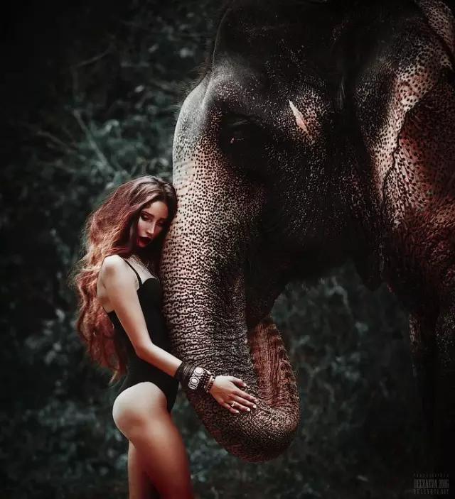 有獨(dú)特的配角,當(dāng)然要毫不猶豫地使用。當(dāng)然,必須考慮到攝影表現(xiàn)的方式,觀察下圖,盡管大象是核心視覺元素,但攝影師依然盡力動用構(gòu)圖和色彩上的手段,來保證視覺上的美感,同時保證人物在整個畫面中的中心感