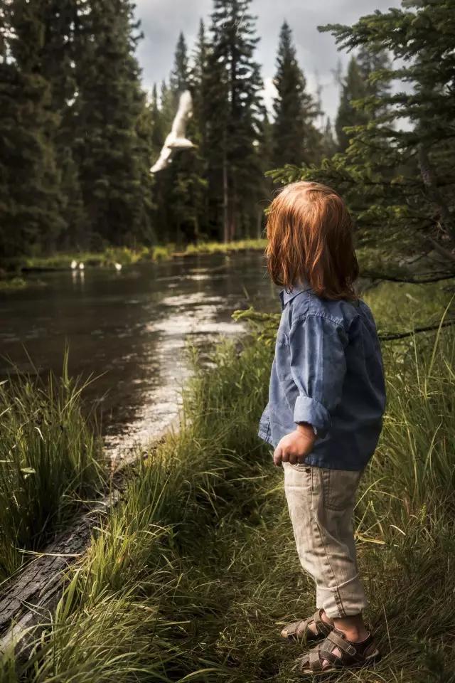 畫面上方偏左一點(diǎn)位置上,處于焦點(diǎn)之外的飛鳥,賦予作品一種陡然而生的動作感和懸念感。