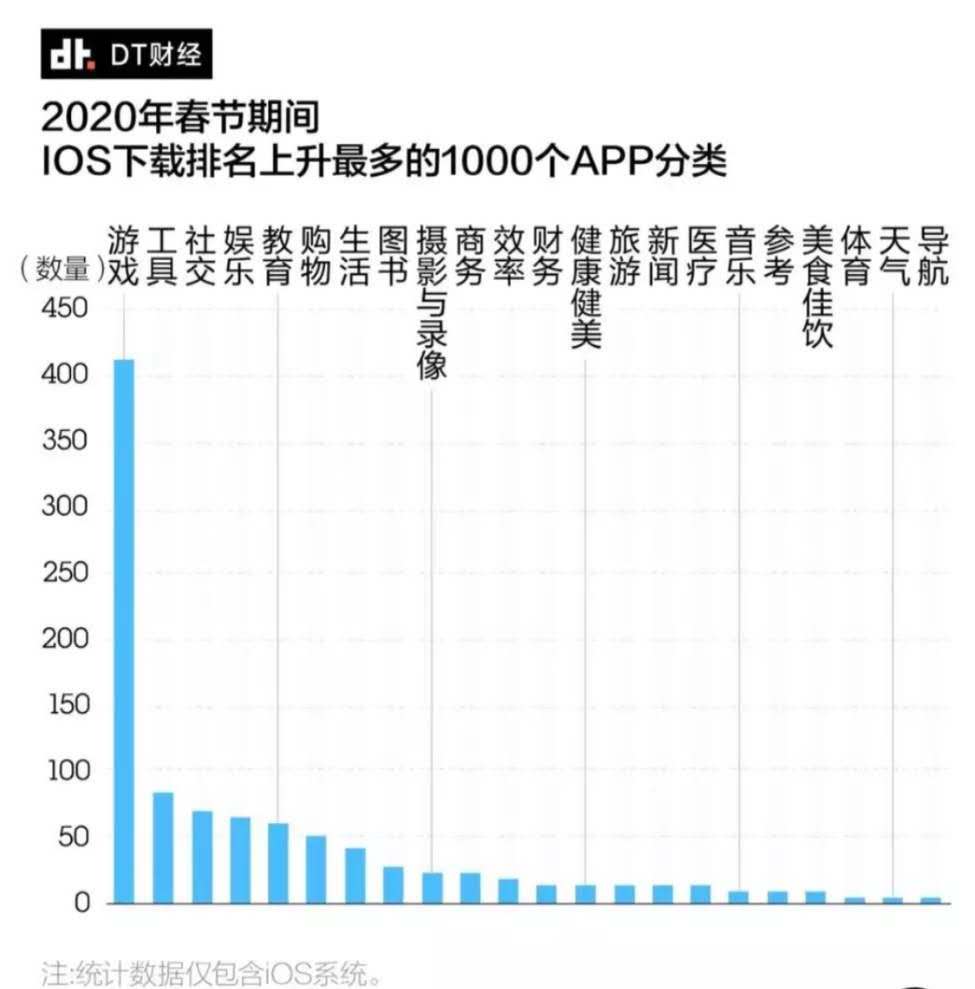 宅在家就可以體驗(yàn)到的娛樂服務(wù)則成了春節(jié)期間備受青睞的娛樂方式。數(shù)據(jù)統(tǒng)計(jì),1月21日至27日下載量上升最快的50款應(yīng)用前三類為,休閑游戲、視頻影音、醫(yī)藥相關(guān)類,游戲占比52%。「王者榮耀」大年三十當(dāng)日流水超20億(去年同期則為13億元),預(yù)計(jì)單月流水超80億;券商預(yù)計(jì),主要游戲公司騰訊、網(wǎng)易、完美世界、盛大游戲 Q1業(yè)績?cè)鏊僦辽偕险{(diào)10%;頭部重度游戲當(dāng)月流水環(huán)比增量一般在20%-40%。