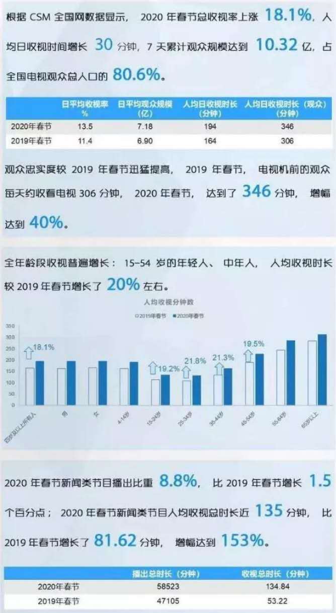 10、電視新聞節(jié)目人均收視總時(shí)長增153%,省級(jí)衛(wèi)視收視率漲23%