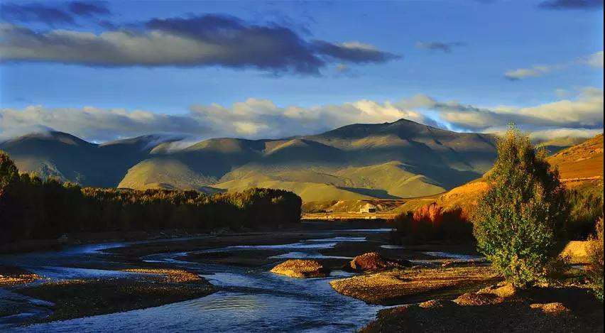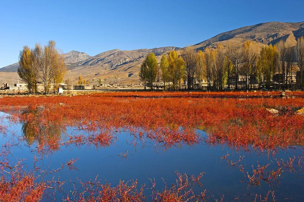 如果剛好遇到紅草季,我們將前往【桑堆紅草地】,欣賞那一抹浪漫的“高原紅”。生長在水中的紅草,大都疏密相間,像灌木枝扎根在水池中。這些紅草在陽光的照射下,紫里透紅,非常吸引眼球。遠(yuǎn)處山腰斜坡上碩大的藏文六字真言,發(fā)散著一種雪域高原的神秘與莊嚴(yán)。