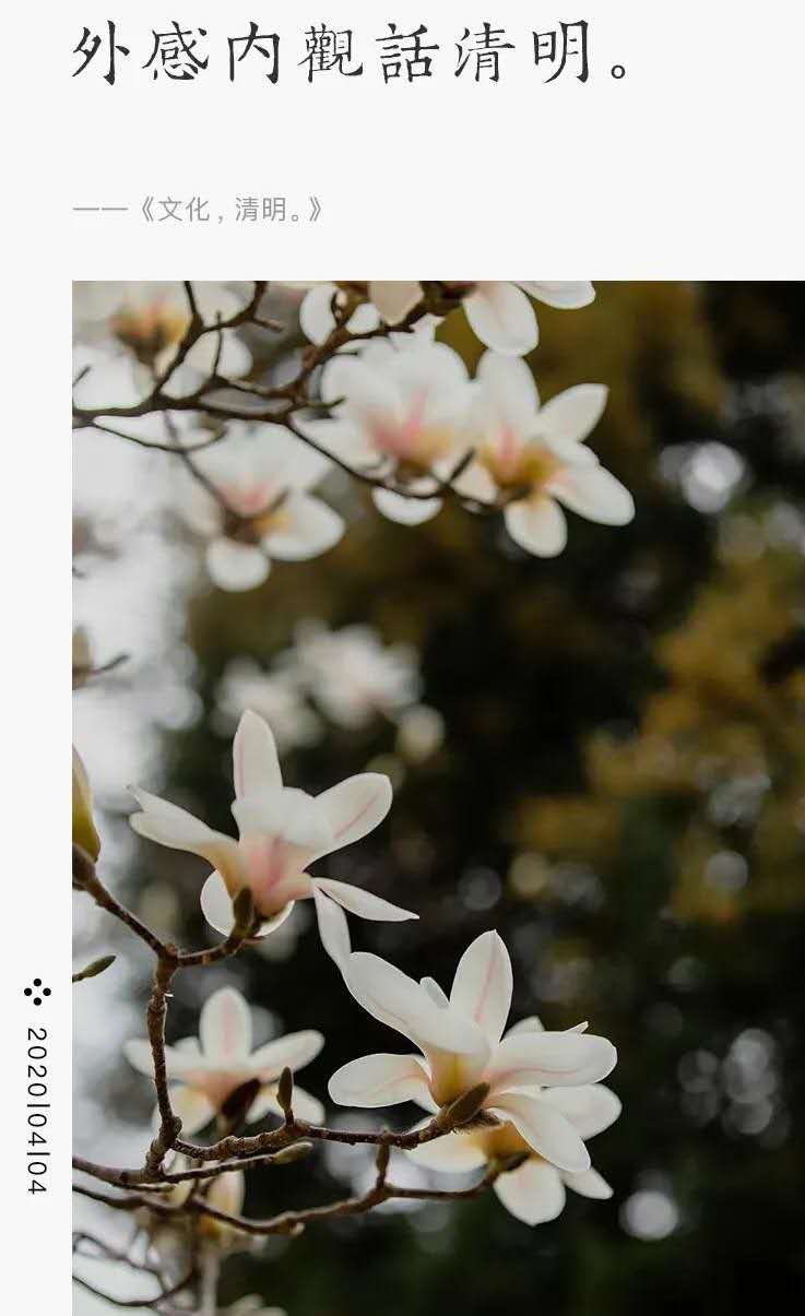 清明,我們又一次進(jìn)入化文的狀態(tài)。細(xì)雨紛紛,煙柳垂淚,行人斷魂,是對(duì)逝者的緬懷和尊敬;萬(wàn)物生長(zhǎng),惠風(fēng)和暢,天清地明,是對(duì)生者的祝福和期待;萬(wàn)物有靈,春發(fā)幾枝,懵懂初醒,是對(duì)靈者的啟示和生發(fā)……