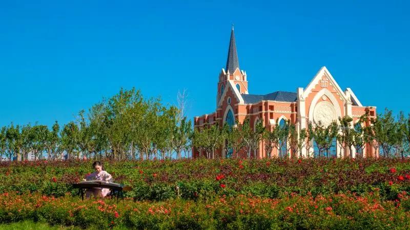 九州洼月季公園占地約131.2公頃,坐上觀光車,兩路花景在旁,把所有的驚喜收納進(jìn)眼中。