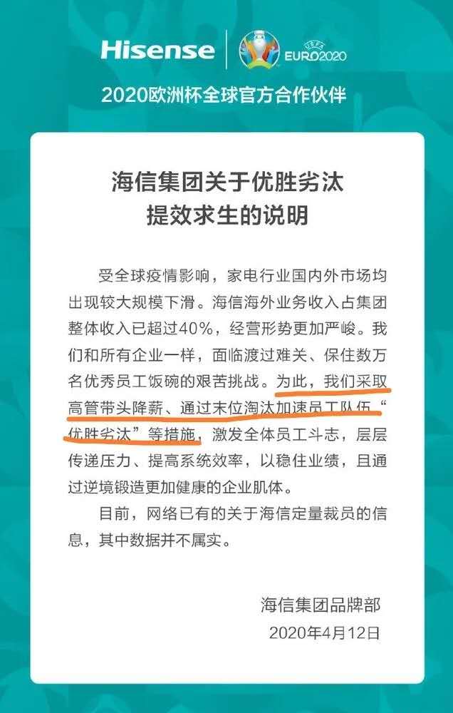 海信發(fā)布官方聲明表示,裁員確有其事,但是1萬人的數(shù)據(jù)并不屬實(shí)。