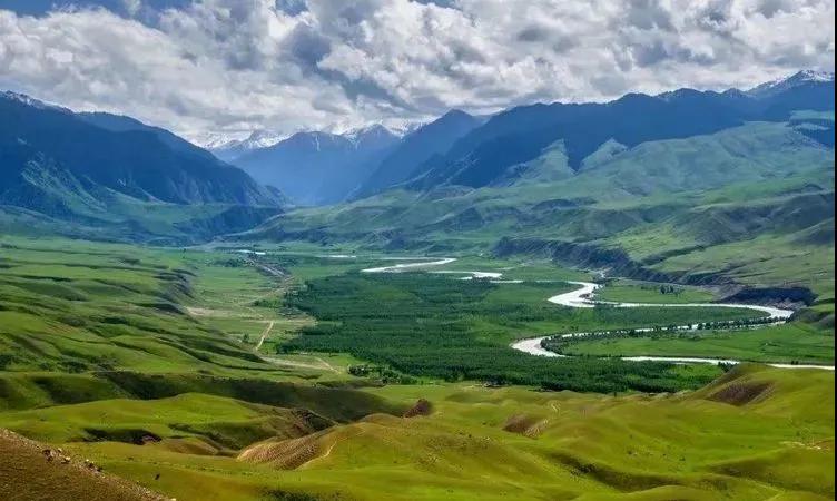 喀拉峻一闊克蘇風(fēng)景區(qū)位于新疆維吾爾自治區(qū)西北部,特克斯縣的南部天山之中??菰挥诤0?000-3600米之間,是一個高山草甸草場,其南北寬約25公里,東西長40多公里,總面積達(dá)1000多平方公里??菰邓S富,氣候涼爽,土質(zhì)肥厚,十分適宜牧草的生長。