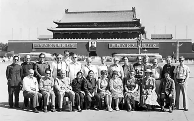 1975年國(guó)旅總社接待聯(lián)邦德國(guó)施瓦本國(guó)際旅行團(tuán),在北京天安門前留念