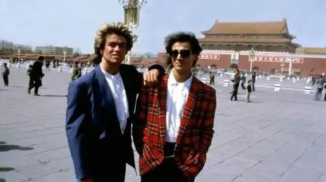 1985年,第一支來(lái)中國(guó)演出的西方搖滾樂(lè)隊(duì)Wham!在天安門前合影
