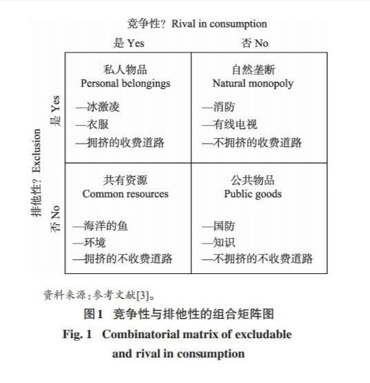 景區(qū)的復雜性在于既有資源屬性上的公共性質,又有經營主體產權上的多樣性。國家發(fā)改委提出的是降低重點國有景區(qū)門票價格,似乎是從景區(qū)產權上來界定的。而產權是包括了所有權、收益權、使用權和處置權等一系列財產權益,在景區(qū)經營活動中,在所有權性質不變的前提下,其他相關權利是可以分割和讓渡的。主要還是取決于景區(qū)資源和產品的屬性。按照Mankiw在《經濟學原理》(Principles of Economics)中給出的物品屬性的分析模型,根據(jù)其是否具有排他性和競爭性兩個維度、4個象限來判斷其屬性的(圖1)(Mankiw,2007)。