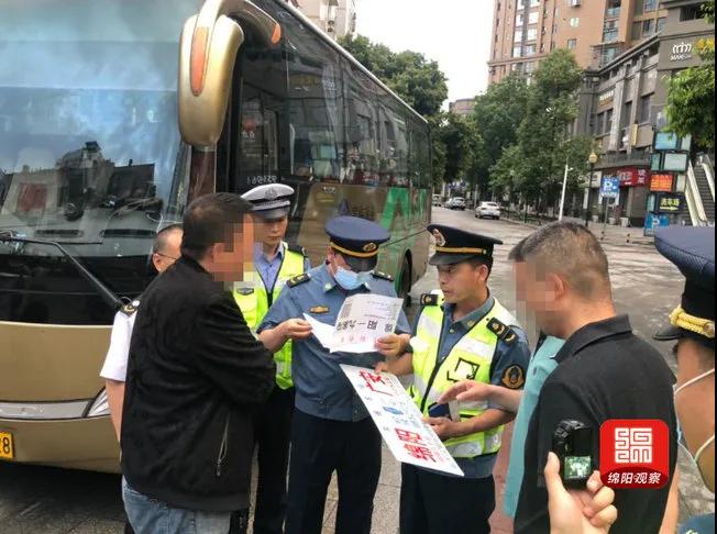 執(zhí)法人員在檢查開往崇州的大巴車時,