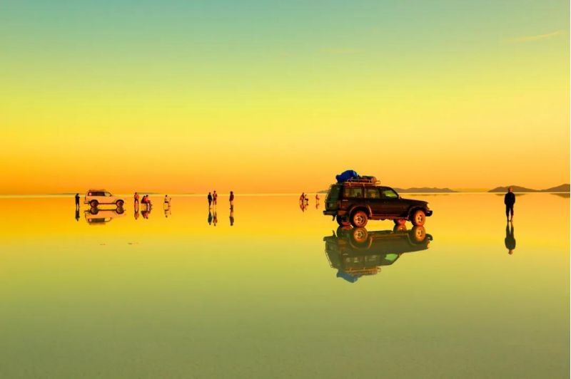“天空之鏡”原型是南美玻利維亞的烏尤尼鹽沼,作為世界上最大的鹽沼地,在天氣晴朗之時(shí),湖面會(huì)想鏡子一般,反映出絢麗的天空,當(dāng)大地與天空相接,美到令人窒息。
