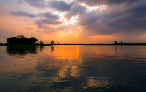 漁父島傳說是當年范蠡西施悠閑泛舟的歸隱之地,長長的環(huán)湖長堤綠樹成蔭,湖面波光粼粼,遙遙望去對岸的鹿頂山峰正霧氣裊繞。為紀念西施而取名“西堤”,與島西頭通向“渤公島”景區(qū)的“蠡堤”相呼應(yīng)。兩堤抱湖貫三景,堤湖相映。亭臺石橋,花木綠蔭,金沙湖水,銀光粼波,步行堤上或泛舟湖上,美哉樂哉。
