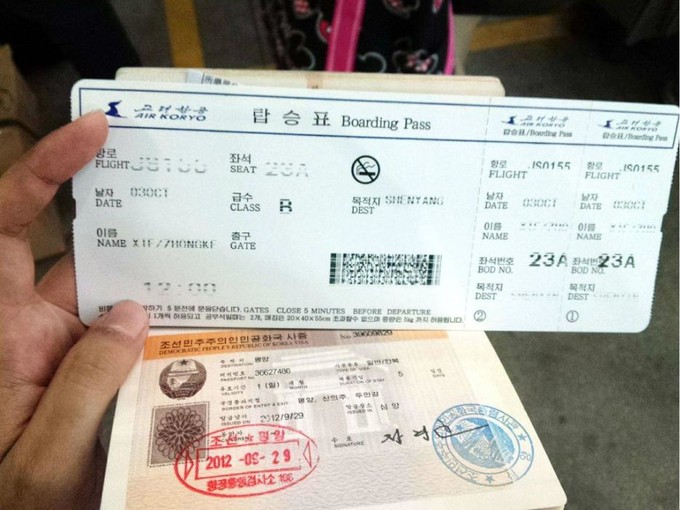 從北京或沈陽直飛平壤的方式入境朝鮮會在護照上留有朝鮮貼紙簽證,但是,如果乘火車、巴士入境都不會在護照上留下朝鮮貼紙簽證的?。≈粫粝轮袊厵z的出入境印章。