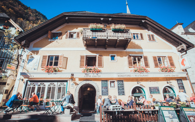 初到哈爾施塔特,我們并沒有一鼓作氣的把整個小鎮(zhèn)走一遍,而是順著入鎮(zhèn)的唯一一條馬路前行,抵達(dá)了小鎮(zhèn)人氣最旺的中心廣場,找一家店安撫一下空虛已久的胃。中心廣場是餐廳和咖啡吧的聚集地,天氣好的時候露天座位都會爆滿,許多人會點(diǎn)杯咖啡坐在這里消磨時光。