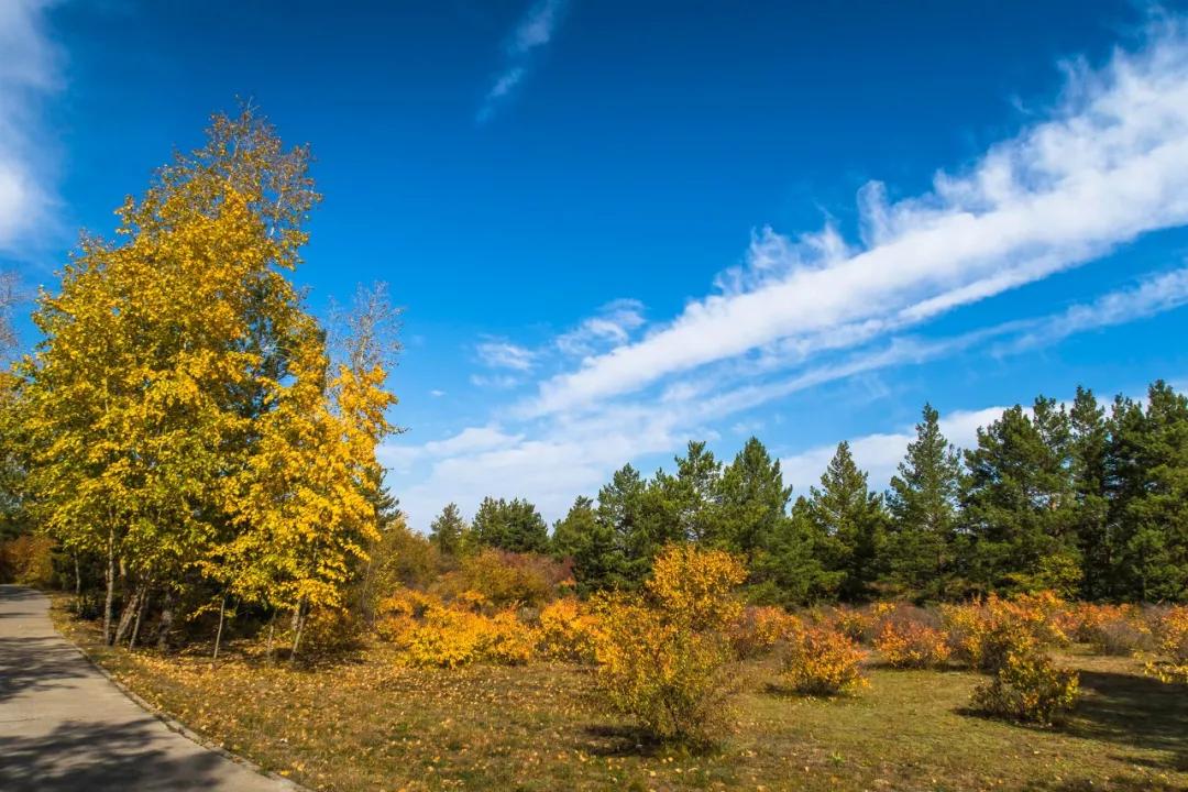 渾善達(dá)克沙地是我國四大沙地之一,主要分布在赤峰市和錫林郭勒盟境內(nèi),總面積3567萬畝,在克旗境內(nèi)1075萬畝。 渾善達(dá)克沙地的形成始于上世紀(jì),到第四紀(jì)時(shí)期均有沉積,由淺黃色沙粉組成,多為固化、半固化沙丘,呈西北——東南向展布。沙地景觀為固化沙地闊葉林景觀、固化沙地疏林景觀、沙地半灌木半蒿類景觀及流動(dòng)沙丘或裸沙。晴空萬里的朗朗秋日,金黃色的沙地被五彩的灌叢點(diǎn)綴的絢麗多姿,金色的白樺疏林、沙榆、紅柳交相輝映,是眾多攝影愛好者夢(mèng)寐以求的好去處。