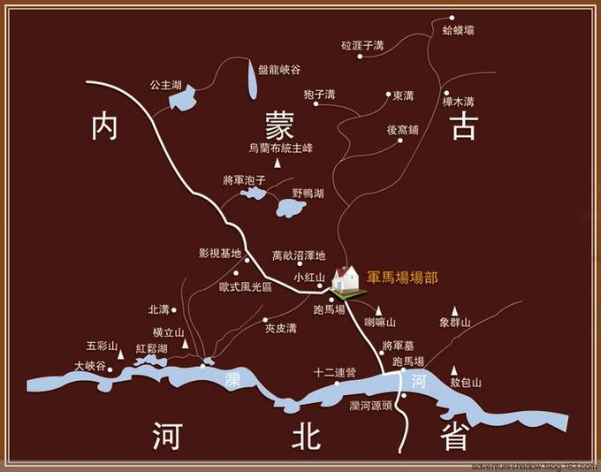 北京京承高速—圍場(chǎng)北或南出口下—龍頭山—棋盤山—塞罕壩國家森林公園—界河—烏蘭布統(tǒng)