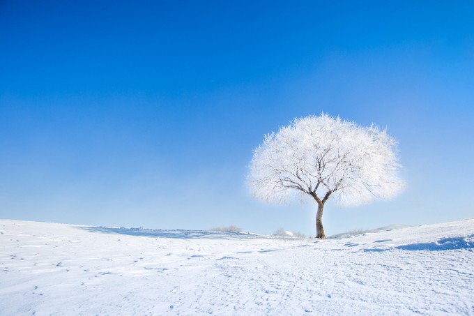 冬季的烏蘭布統(tǒng)儼然是一個(gè)白雪皚皚,銀裝素裹的冰雪童話世界,越野車進(jìn)入塞罕壩森林公園時(shí),道路兩邊都是鱗次櫛比的筆直的參天大樹(估計(jì)是松柏類),白茫茫的一片,甚至有幸一睹雪白的狐貍,或許是太冷了外出覓食,但是并沒有停留很久就不見了蹤跡,讓人懷疑是否出現(xiàn)過。這里沒有雪鄉(xiāng)著名的冰雪蘑菇屋,但這里有小河頭的雪饅頭;這里沒有哈爾濱五彩繽紛的冰雕王國,但這里有小巧精致的冰燈。這里的霧凇甚至比我12年在霧凇島看到的都要壯觀,唯美。