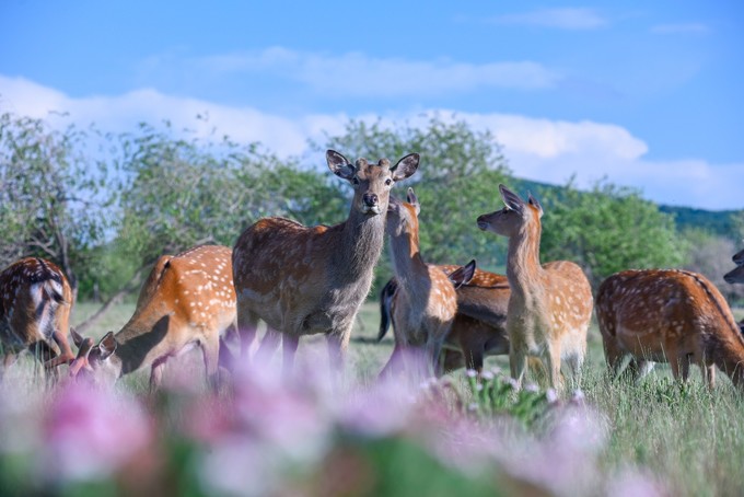 從小到大,最喜歡看的電視節(jié)目是動(dòng)物世界,最喜歡去的地方是動(dòng)物園,似乎孩子都不能抵擋動(dòng)物帶來的喜悅。長大一些,慢慢不滿足于圍墻里的動(dòng)物,希望能夠去野生動(dòng)物園,感受大自然動(dòng)物的天性。但也僅限于坐在觀光車上,在工作人員的指導(dǎo)下,小心翼翼地觸摸他們。我從來沒有想過,我可以和他們一起奔跑在蒼茫的草原上。零距離接觸草原精靈梅花鹿,和當(dāng)?shù)厝艘黄饑恫菰螅婉R兒輕聲耳語,懷抱小羊羔,時(shí)不時(shí)還能看到雄鷹展翅高飛追捕獵物的場(chǎng)面…