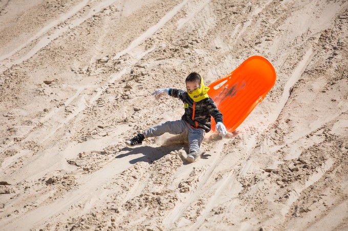 沒有去之前,我曾經(jīng)因?yàn)槟慷貌菰耐懟耐矗笃懵兜纳车卮掏次业碾p眼,卻也無能為力。來到壩上草原,我發(fā)現(xiàn),原來沙化的草原還能作為天然的滑沙場(chǎng),因?yàn)楹⒆觽兊臍g聲笑語,我突然釋然了,因?yàn)樗伊肆硪环N使命,一種延續(xù)快樂的使命。