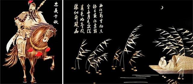 由河北省民間工藝美術(shù)大師楊丙軍葦編藝術(shù)創(chuàng)作室制作的蘆葦畫(huà),是用白洋淀蘆葦制作的工藝畫(huà),畫(huà)面本色天然,色澤淡雅樸素,制作考究精美,具有濃厚的水鄉(xiāng)特色。尤其是那些人物和動(dòng)物畫(huà),手法細(xì)膩,清新古樸,形態(tài)逼真,栩栩如生,大有呼之欲出之感。代表作有《漁歌唱晚》、《月上船頭》、《荷花圖》、《垂釣》、《漁家姑娘》、《鐘馗》等。曾榮獲“首屆中國(guó)民間藝術(shù)博覽會(huì)”金獎(jiǎng)、“首屆河北省旅游紀(jì)念品設(shè)計(jì)大賽”銀獎(jiǎng)。作品曾先后出口到日本、韓國(guó)、新加坡、加拿大、美國(guó)、英國(guó)等國(guó)家。