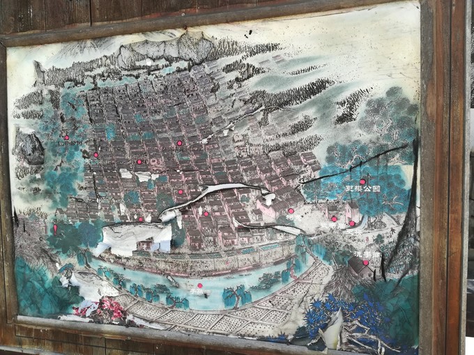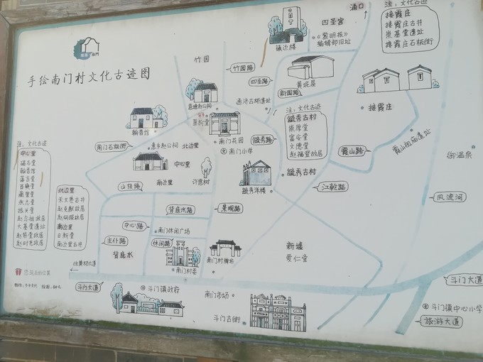 村口的全莊地圖,推薦停車在莊門,莊門進(jìn)莊門出,幸存古屋集中在中心巷道東側(cè),南邊主要是花田。