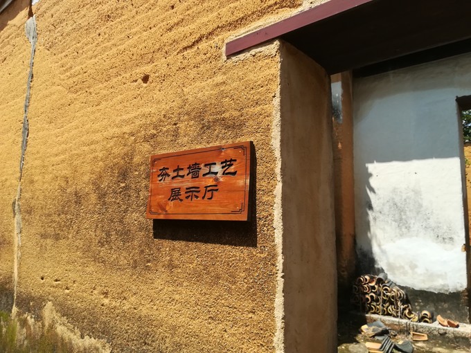 夯土墻工藝展示廳,排山村大部分老建筑的墻體都是用黃土、沙、石灰外加糯米漿和紅糖漿混合的三合土。
