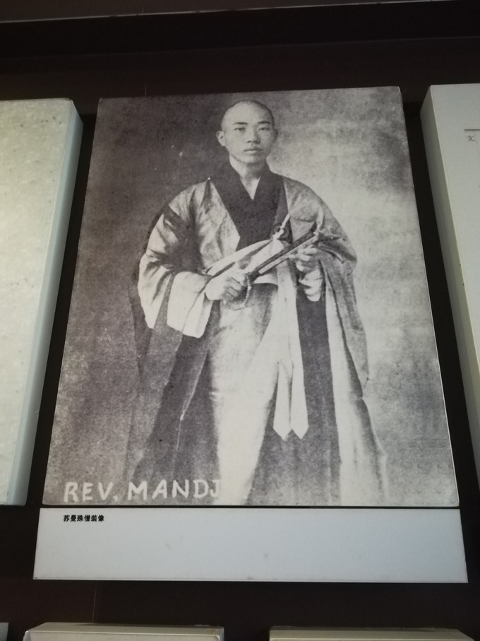 雕像左邊是蘇曼殊的紀(jì)念館,陳列了幾幅蘇曼殊書畫及一些資料的復(fù)制品。