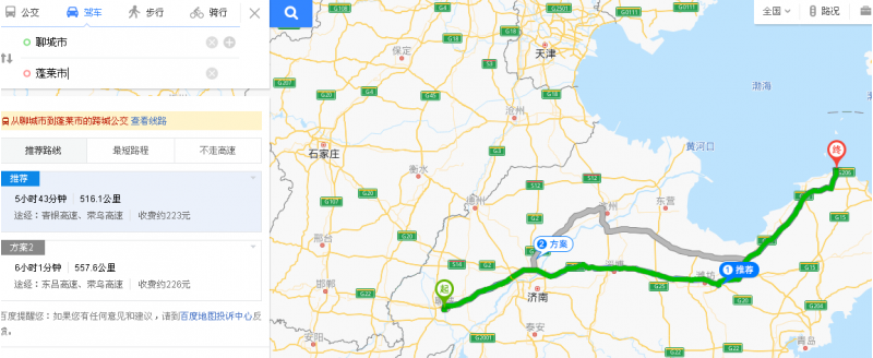 D1:聊城——煙臺蓬萊(516.1公里,大約6小時(shí)左右)