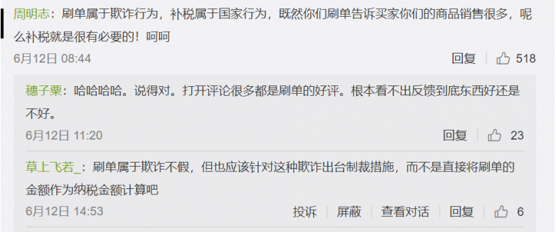 “全部收入里可能有一部分是我們花錢刷出來的,其實并沒有產生這么大的交易額,現(xiàn)在要求對這部分收入繳稅,實在是有苦說不出,因為刷單行為在平臺是不允許的,我們很難去證明,左右為難?!币幻W店老板表示。