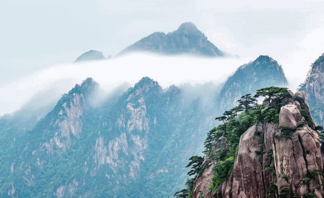 一座不在五岳之中的山,卻集泰山之峻、華山之險(xiǎn)、峨眉之秀、雁蕩之奇于一身,又兼有遒勁盤曲的蒼松、奇巧別致的怪石、翻騰洶涌的云海、常年不息的溫泉,原本默默無名的黃山,就這樣以包羅萬象卻自成一體的豐富,從安徽南部的煙雨迷霧中,走入文人的詩詞文章,進(jìn)入萬千大眾的眼界中。