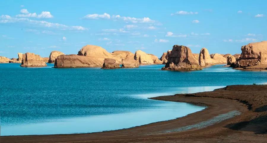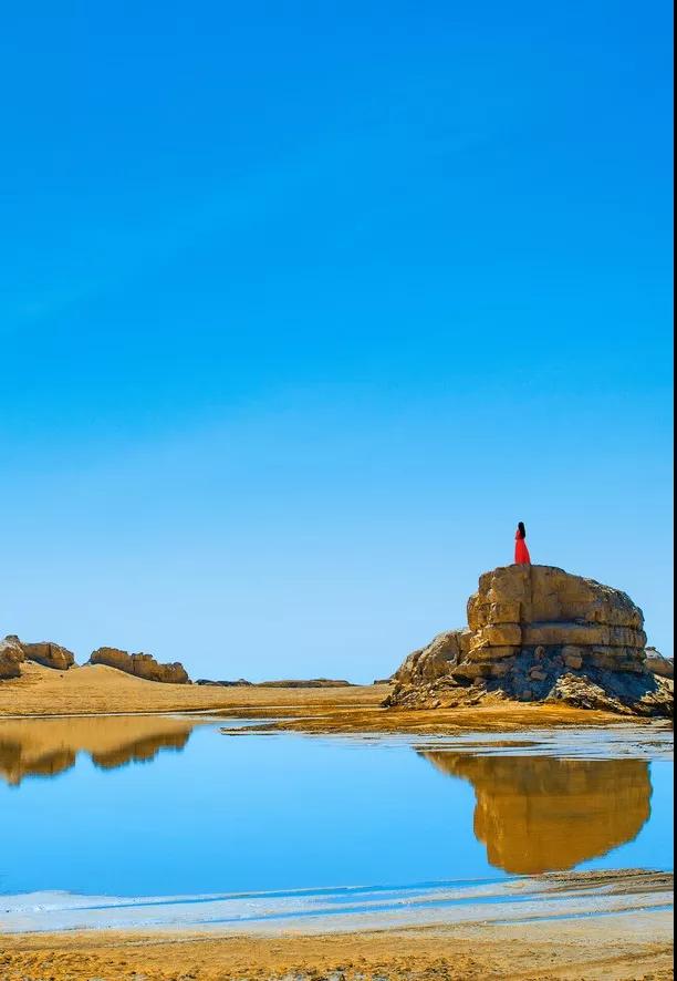這是世界上唯一一處水上雅丹地貌,因其位置較偏僻,即使是當(dāng)?shù)厝艘部赡懿恢趺催^(guò)去,所以至今仍是一片未開(kāi)發(fā)的處女地,鮮少有人涉足。這立于汪洋之上的雅丹地貌群經(jīng)過(guò)上千年的風(fēng)雨殘蝕,如同遨游大海顯露脊背的群鯨,湖岸邊高大的鯨背是天然的觀景臺(tái),極目遠(yuǎn)望,西邊是高低錯(cuò)落的水上雅丹地貌群,有的如策馬揚(yáng)鞭,有的如奔馳的駱駝,有的像婀娜多姿的女子,魔幻而神秘。以清澈透明的藍(lán)天為幕,參差錯(cuò)落的雅丹地貌與碧波交相輝映,天上鴨鳴雁啼,水中波光粼粼,這一望無(wú)際的荒漠中憑空而出了一片”汪洋“,只有親身看過(guò)這一片汪洋上的鬼斧神工之作,才會(huì)明白為它為什么會(huì)被人稱為“魔鬼城”。