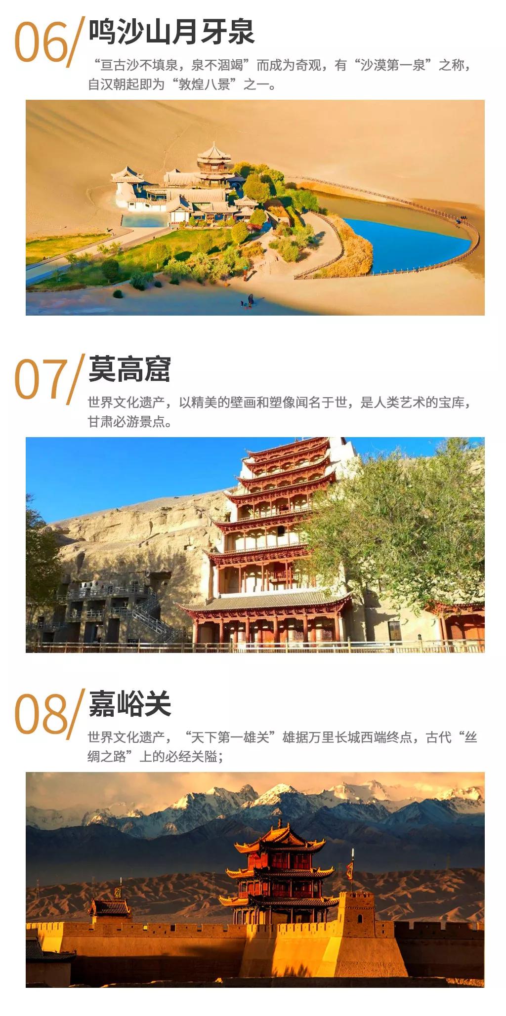 1. 敦煌莫高窟景區(qū)自2015年6月起實(shí)行數(shù)字展示中心數(shù)字洞窟展示和莫高窟實(shí)體洞窟體驗(yàn)的預(yù)約參觀模式,每天限6000人參觀,團(tuán)隊(duì)參觀時(shí)間嚴(yán)格按照莫高窟預(yù)約場(chǎng)次進(jìn)行,因此,敦煌段景點(diǎn)參觀順序會(huì)根據(jù)莫高窟時(shí)間進(jìn)行調(diào)整或同團(tuán)客人安排不同時(shí)間游覽,敬請(qǐng)配合。