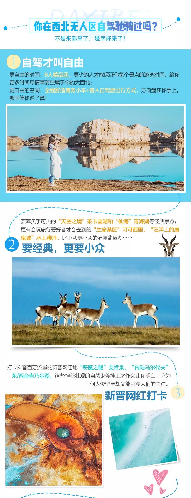 (3)茫崖翡翠湖、東/西臺吉乃爾湖、艾肯泉等尚未設(shè)立為景區(qū),但如當(dāng)?shù)厝耸杖…h(huán)保費等費用與我方無關(guān),望您諒解。